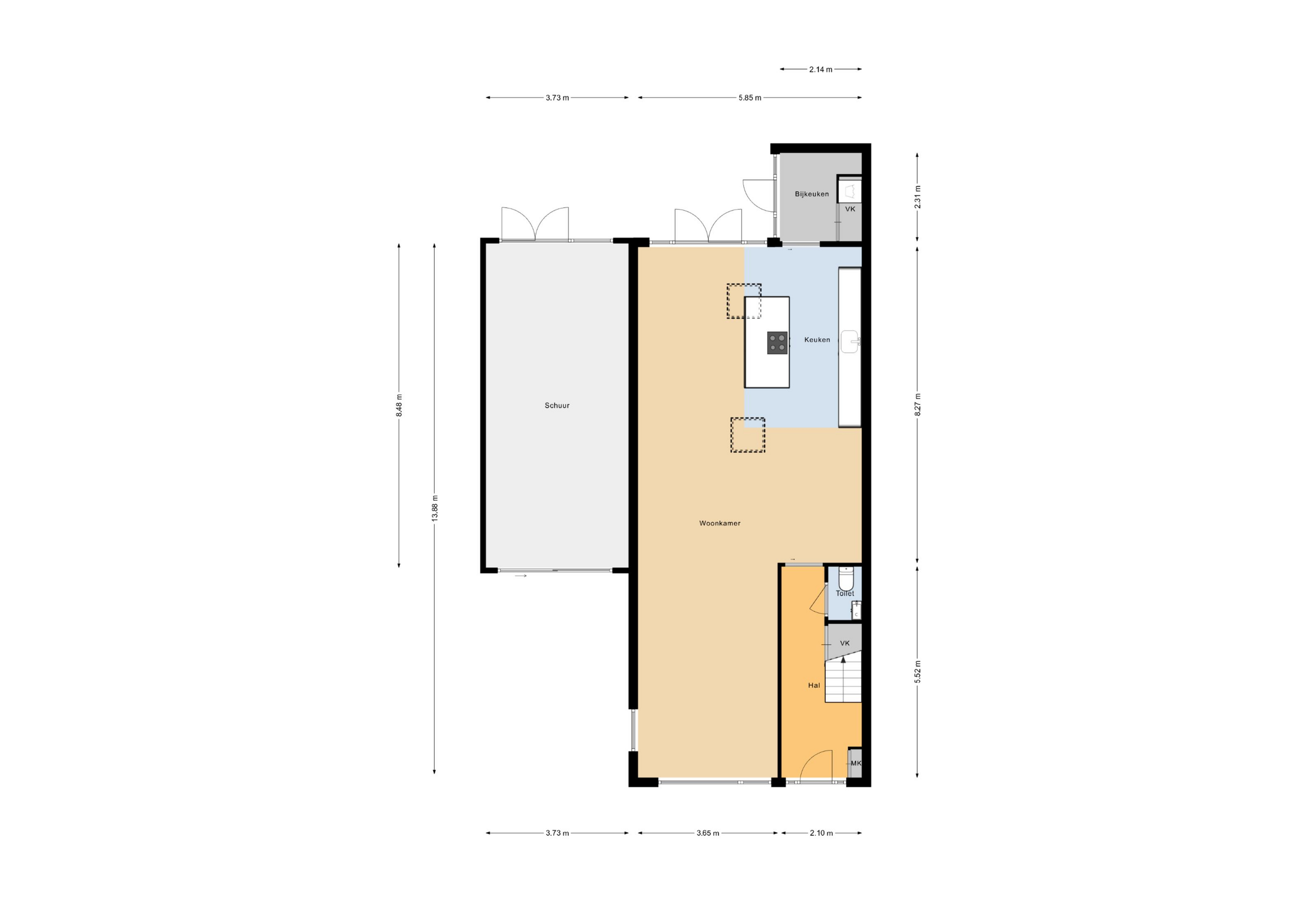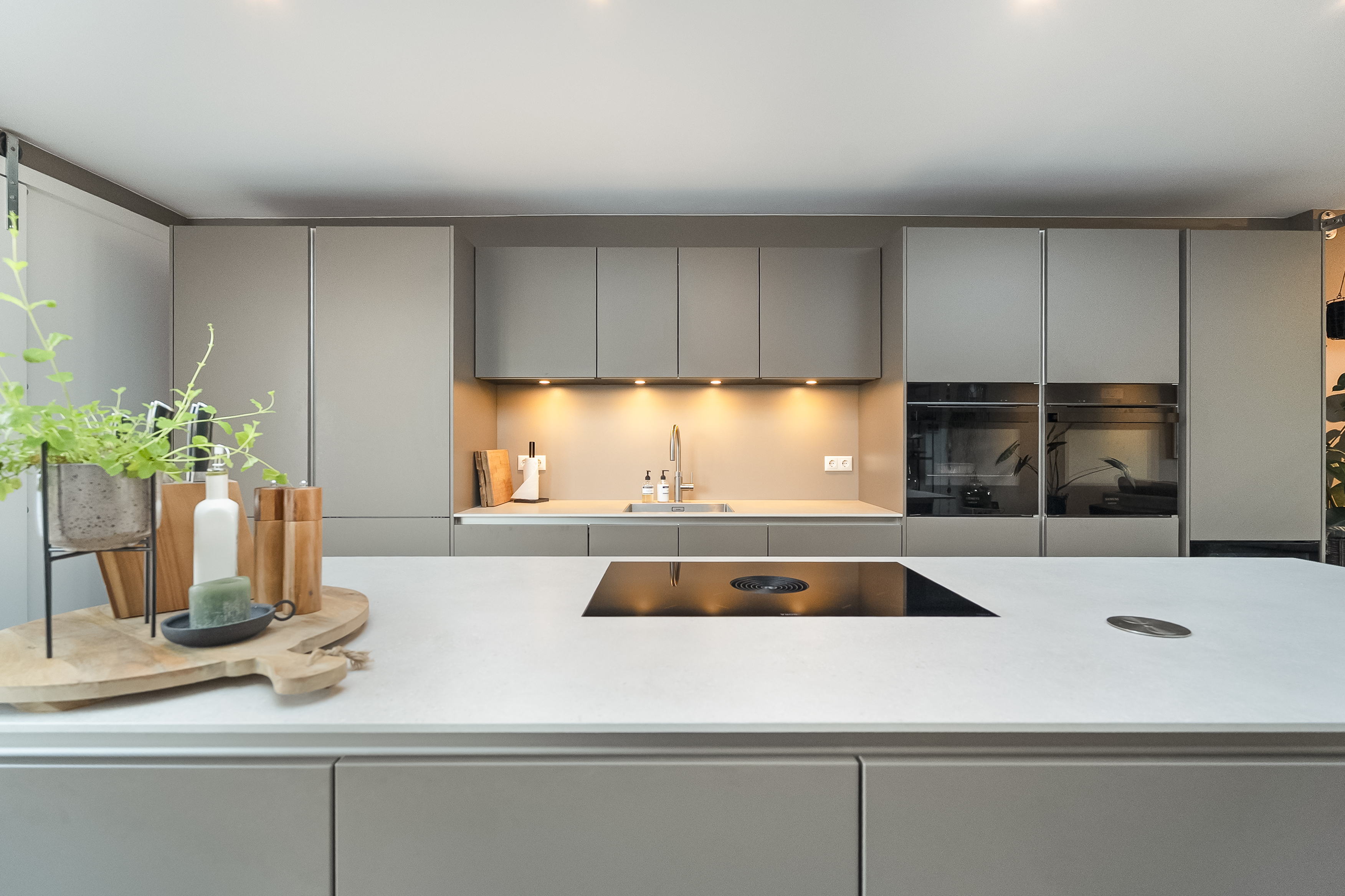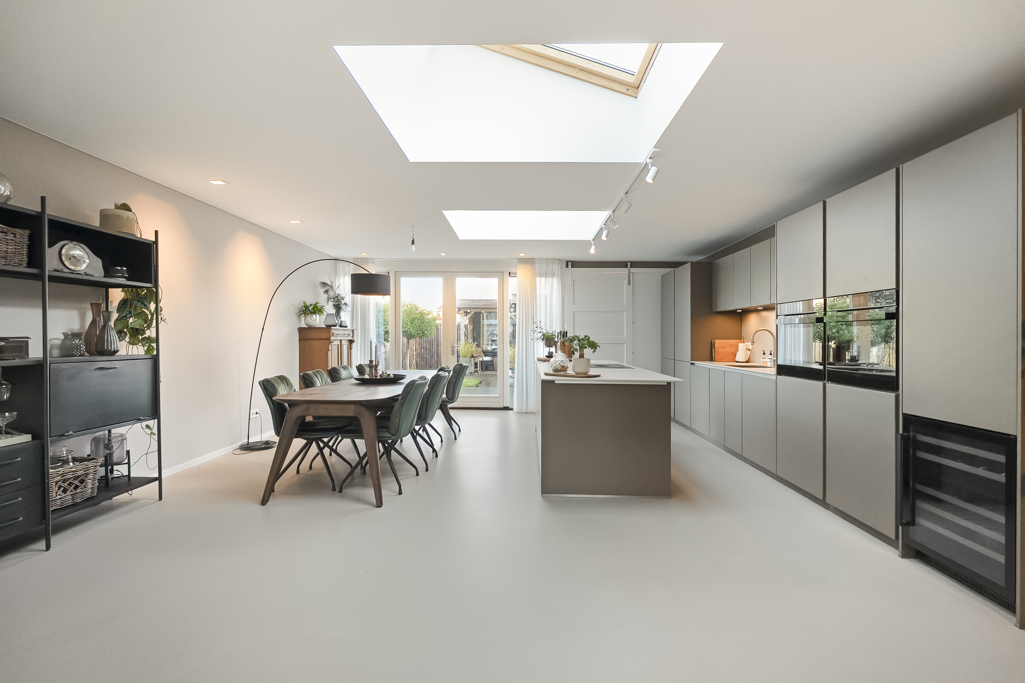 - Royale woonkeuken van ca. 30 m², uitgevoerd met luxe inbouwapparatuur en openslaande tuindeuren die binnen en