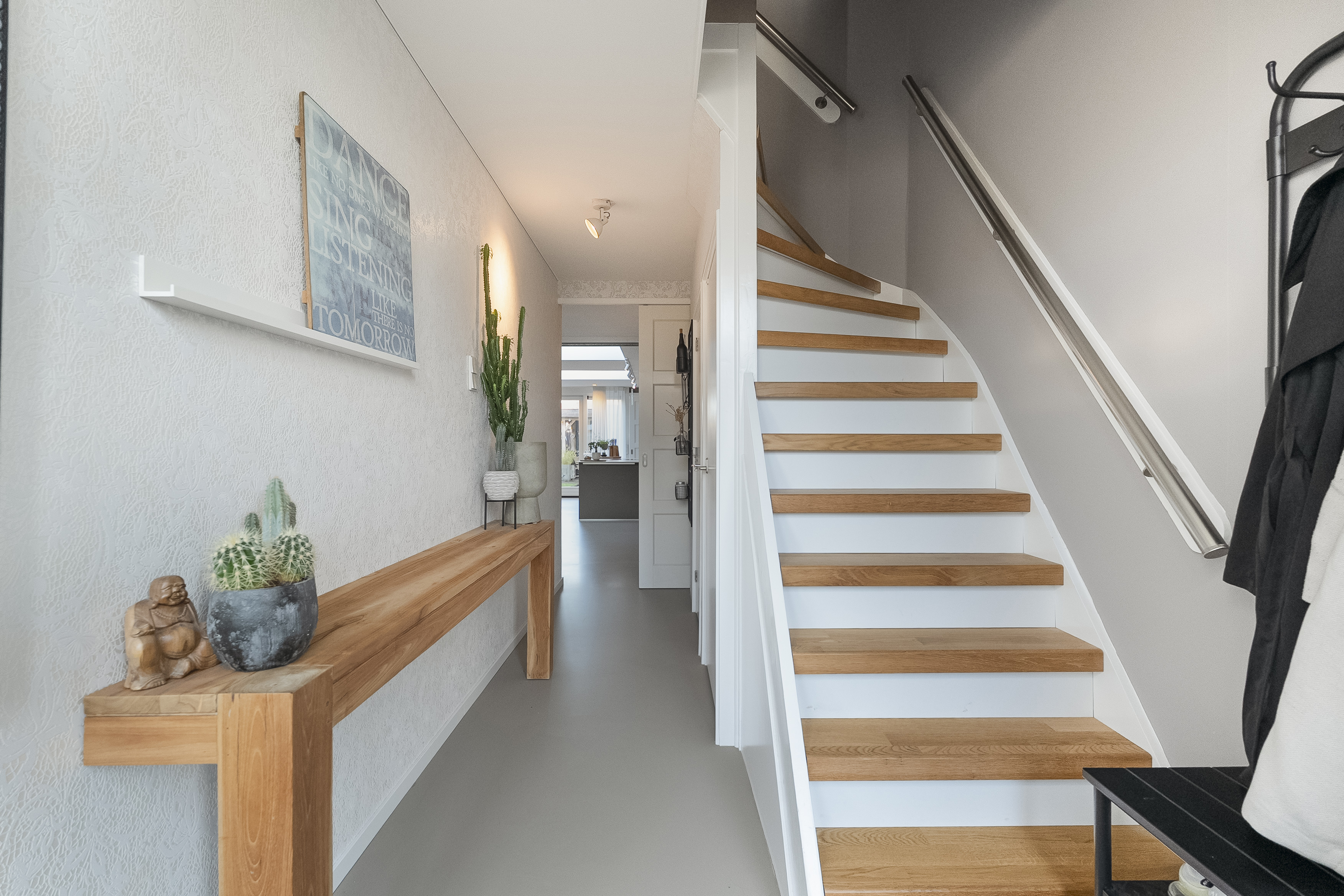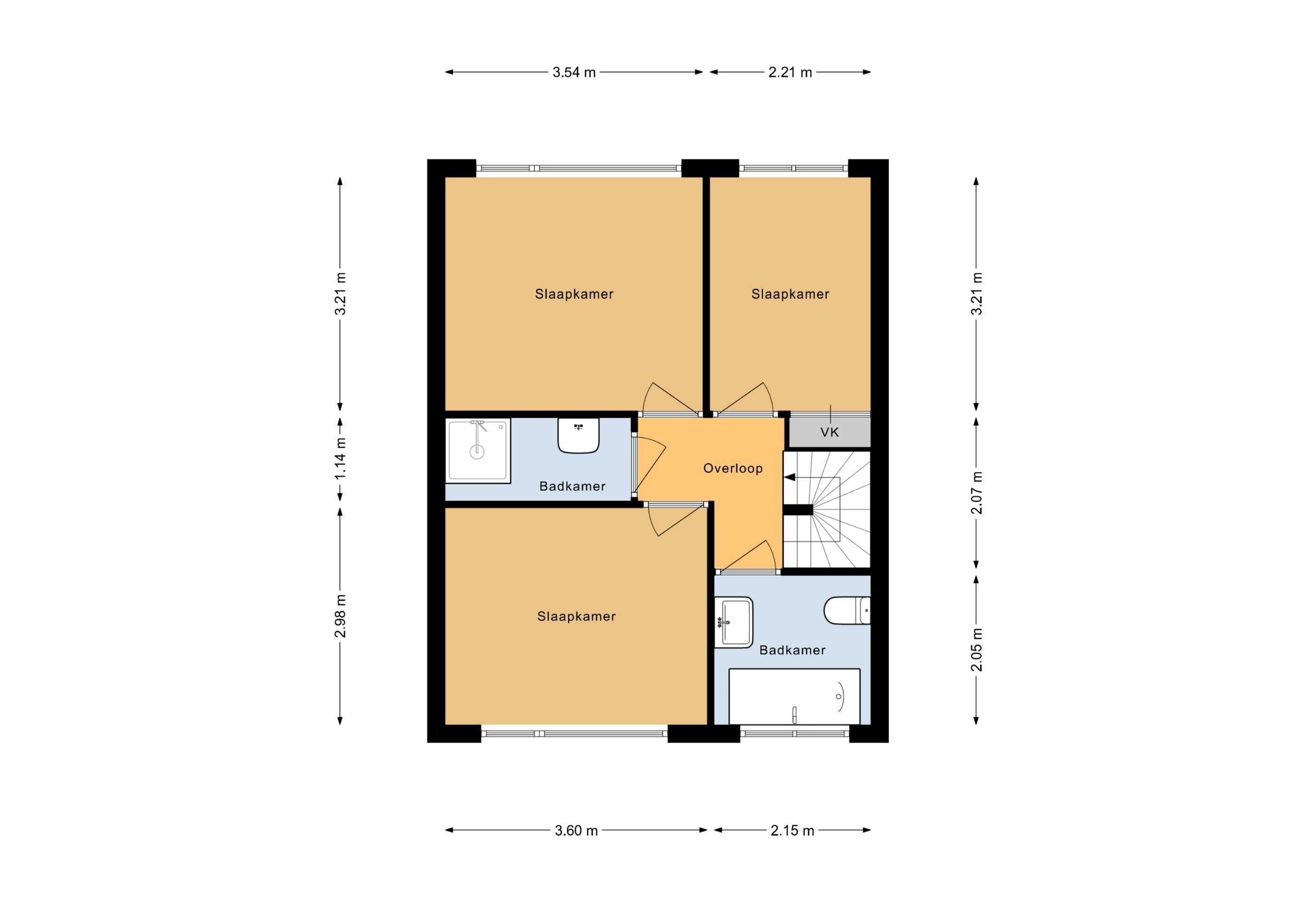 De overloop leidt naar drie lichte en rustgevende slaapkamers, elk met een eigen sfeer. De luxe badkamer voelt als een privé-spa met een ligbad, stijlvol wastafelmeubel, toilet en comfortabele vloerverwarming. Daarnaast is er een tweede badkamer met inloopdouche, wastafelmeubel en eveneens vloerverwarming, ideaal voor ontspannen ochtenden samen.