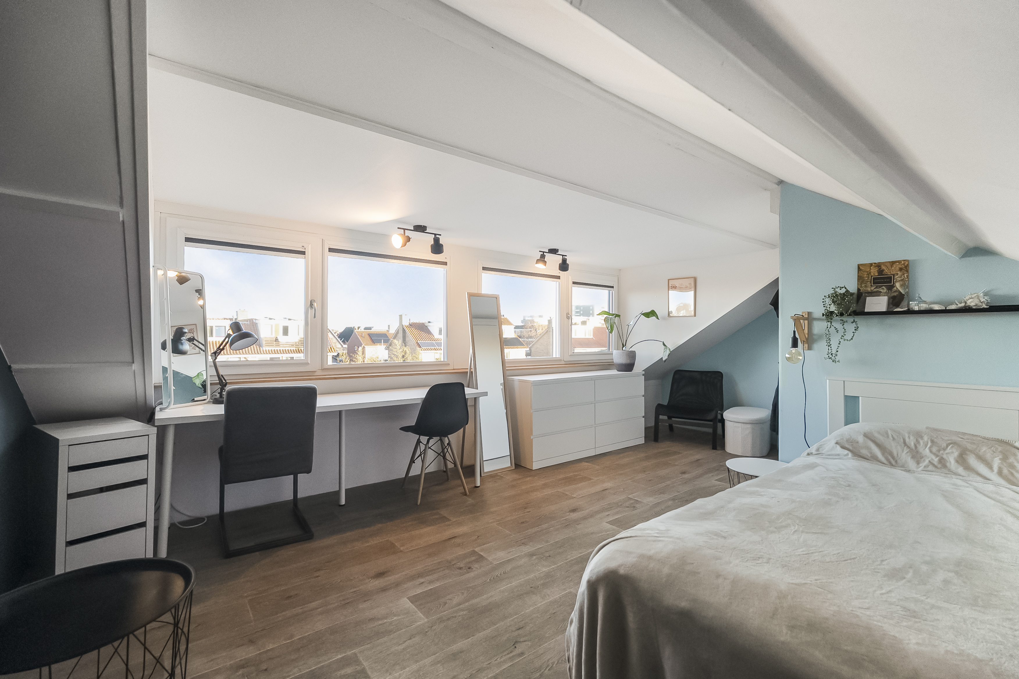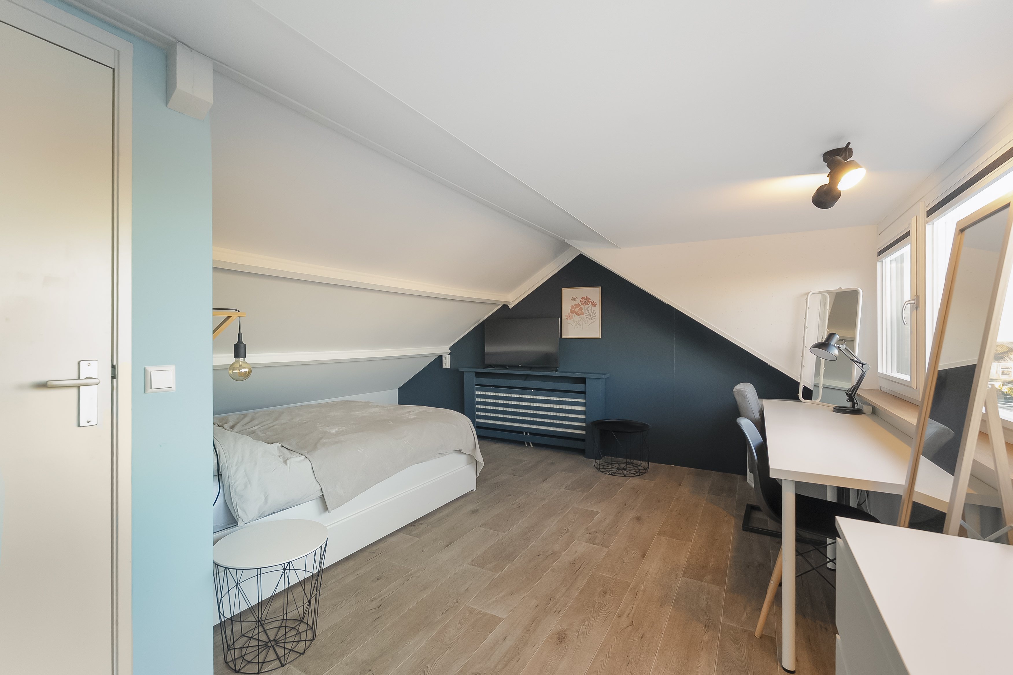 Via de vaste trap kom je op de ruime zolderverdieping, waar de vierde slaapkamer met dakkapel een heerlijke plek is om je terug te trekken, licht, rustig en vol karakter.