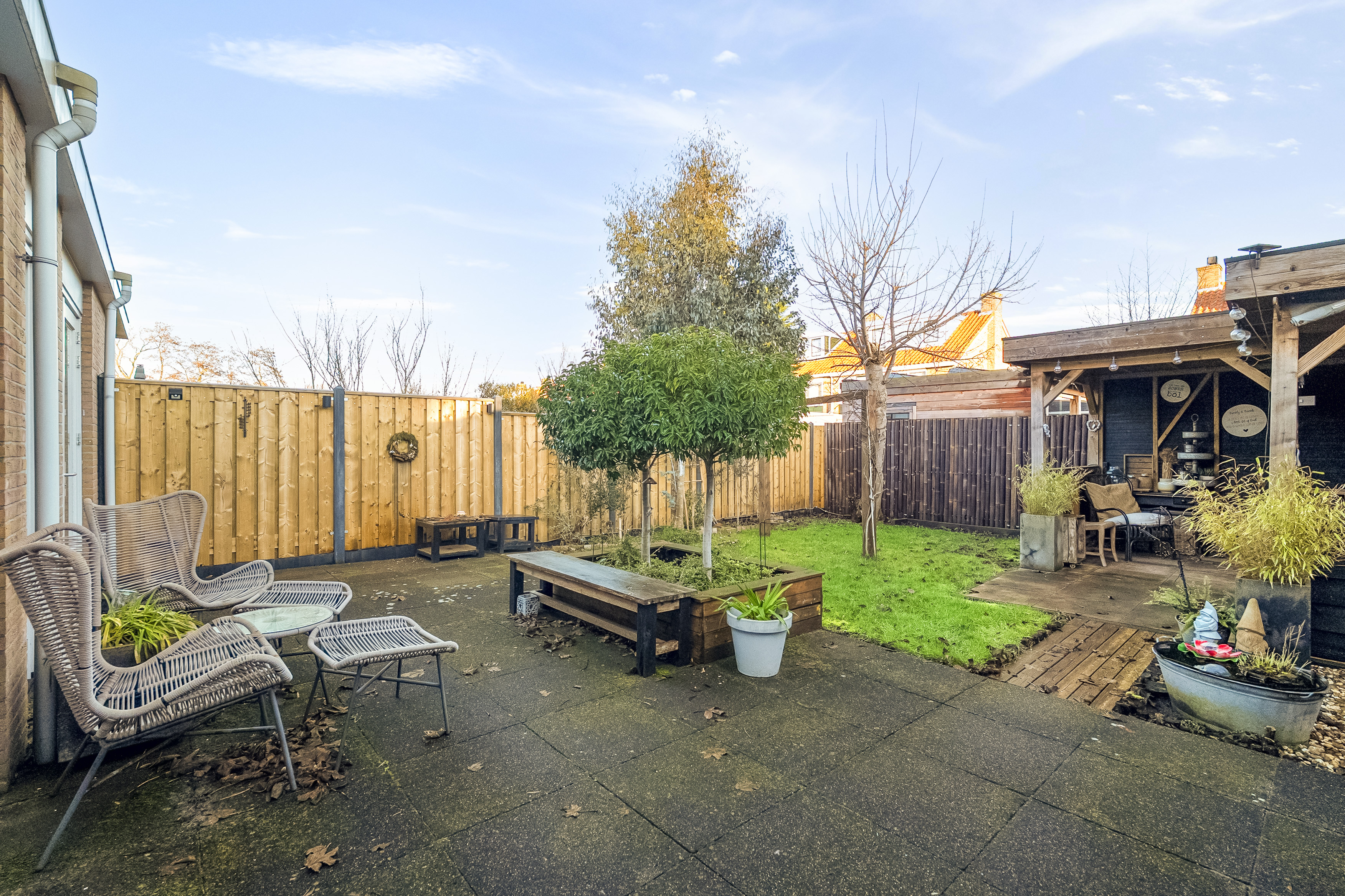 - Zonnige en privacyvolle achtertuin met sfeervolle overkapping voor lange avonden buiten